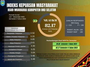 Indeks Kepuasan Masyarakat RSUD Muaradua Kab. OKU Selatan Semester II Periode Juli- Desember 2022 dengan nilai 82.17 June 8, 2023 rsud BERITA 0 https://www.facebook.com/rsud.muaradua.77